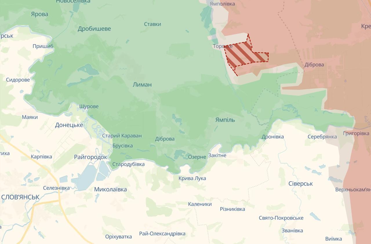 На севере у РФ продвижение в районе Торского - в направлении Лимана.