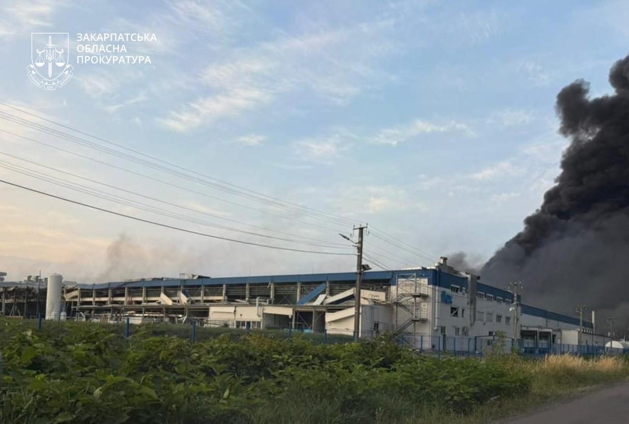 В Мукачево удар по заводу электроники Flex вызвал масштабное возгорание. ОВА сообщает об уничтожении складов и 12 пострадавших. Городские паблики призывают жителей закрывать окна из-за масштабного пожара (первые три фото и видео).