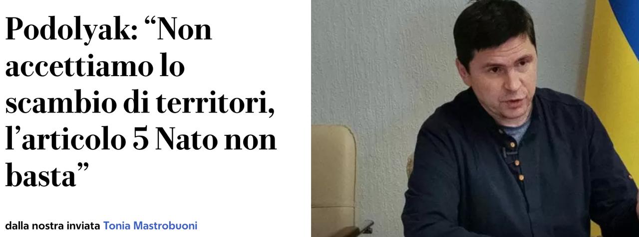 Украина признает де-факто оккупацию своих территорий, но не де-юре, и будет добиваться их освобождения невоенными средствами. Об этом заявил советник главы Офиса президент Михаил Подоляк в интервью La Repubblica.