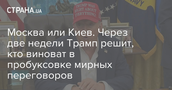 Президент США Дональд Трамп заявил, что решит через две недели, на ком лежит ответственность за торможение переговоров о мире в Украине: на Москве или Киеве.