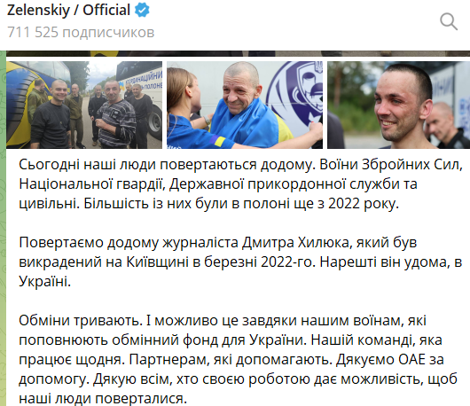 Состоялся новый обмен пленными с РФ. Фото: Телеграм