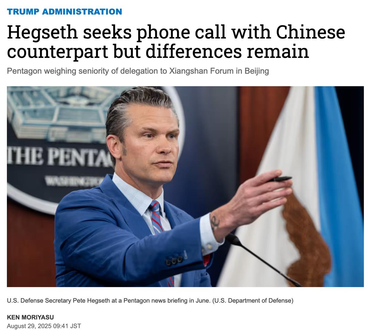 По их данным, Китай колеблется, поскольку "не видит чёткого пути к улучшению отношений". В частности, Пекин обратил внимание на заявление главы Пентагона Пита Хегсета, что "угроза со стороны Китая реальна, и она может быть неминуемой".