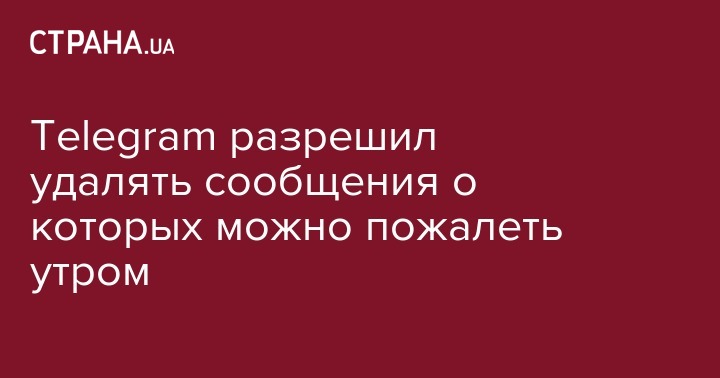 Интернет-чат Telegram ввел функцию удаления сообщений в течение 48 часов после отправки. В случае активации новой функции, такое сообщение будет недоступно как для получателя, так и для отравителя.