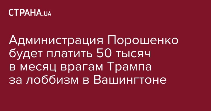 Администрация Порошенко будет платить 50 тысяч в месяц врагам Трампа за лоббизм в Вашингтоне