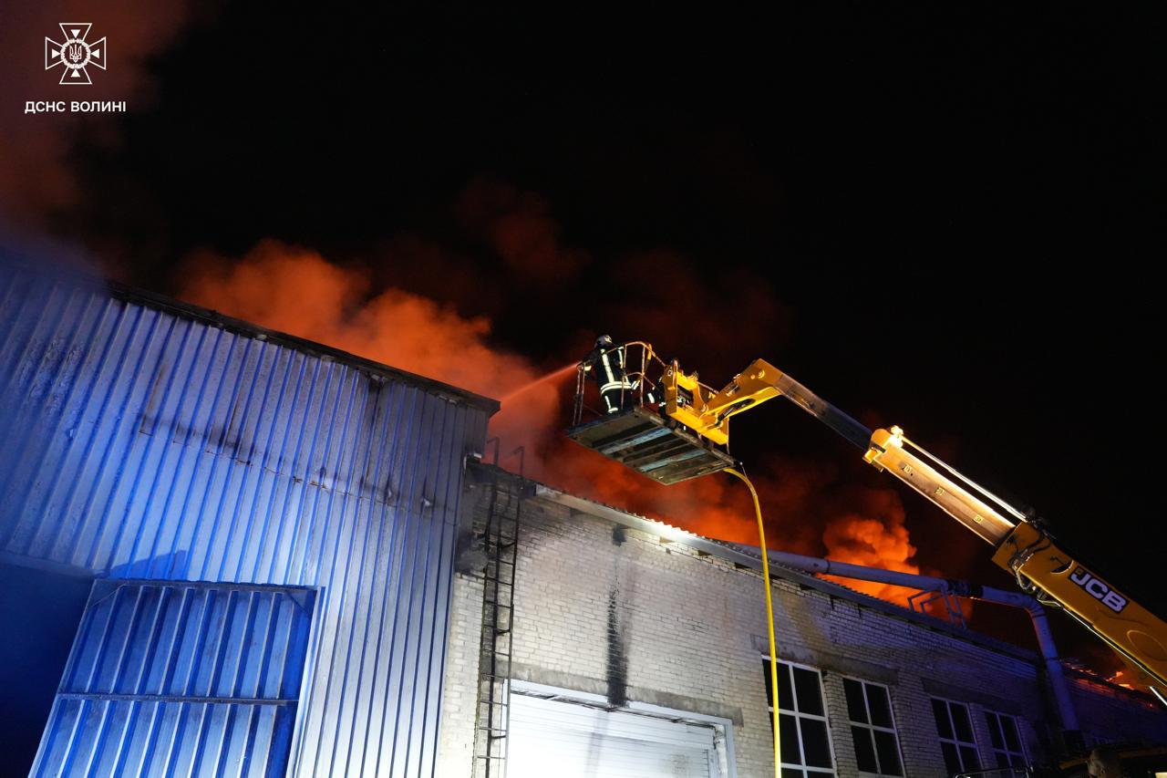 9.00 Под Луцком после обстрела загорелось предприятие в поселке Цумань. Площадь пожара на момент прибытия спасателей достигала около 1000 квадратных метров.