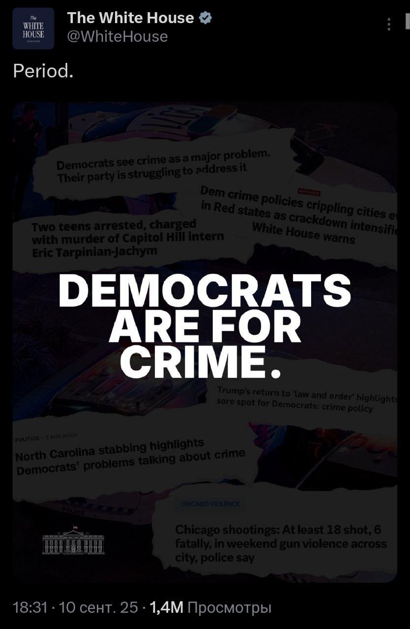 "Демократы - за преступность", - пост с таким утверждением опубликовали соцсети американской администрации.