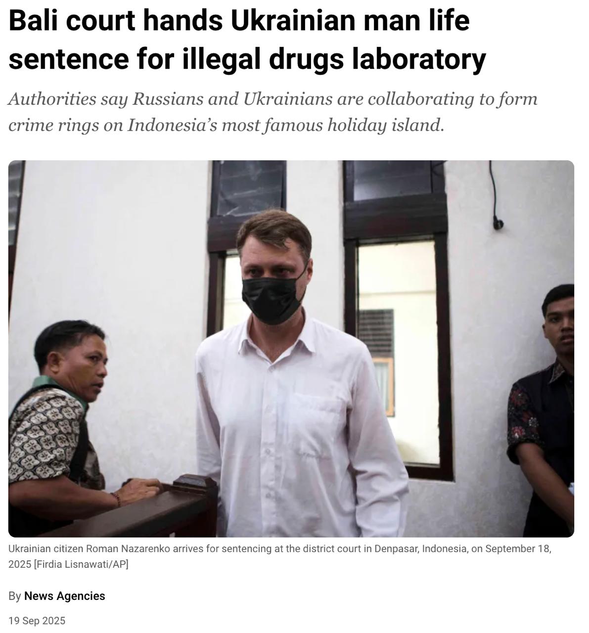 На Бали украинца приговорили к пожизненному заключению за создание нарколаборатории вместе с россиянами - СМИ