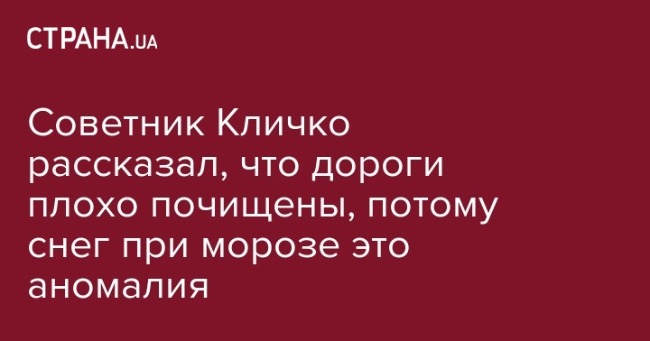 Советник Кличко рассказал, что дороги плохо почищены, потому снег при морозе это аномалия