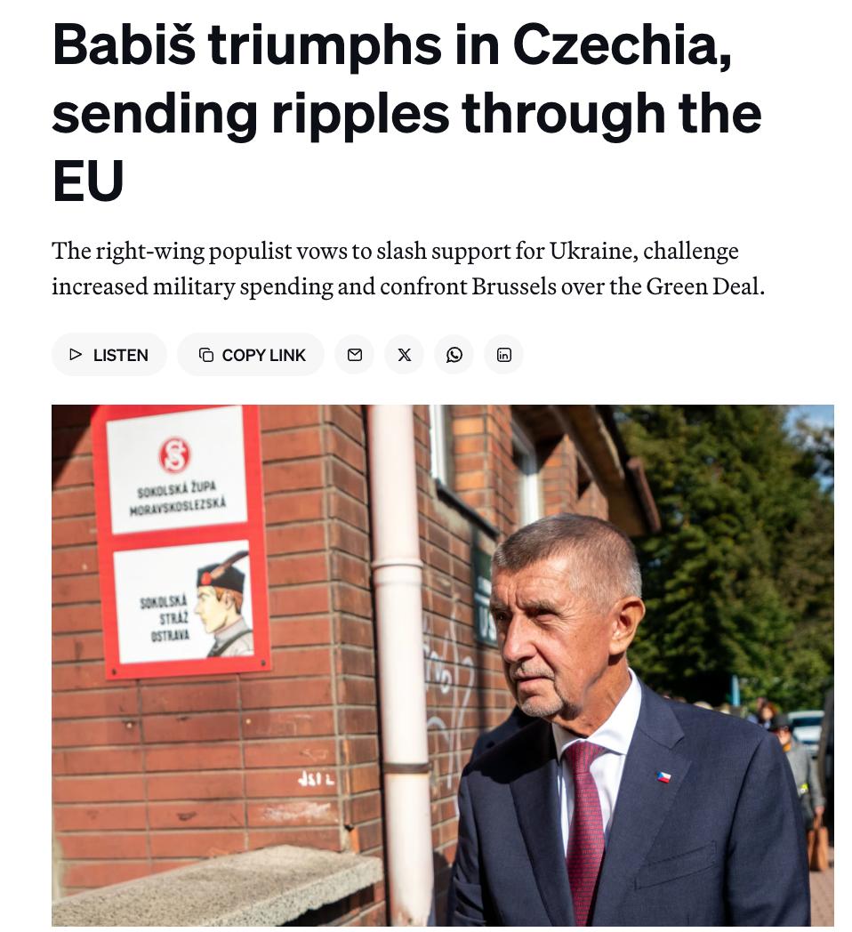 Детальнее парламентские расклады в Чехии после выборов мы анализировали в отдельном материале.