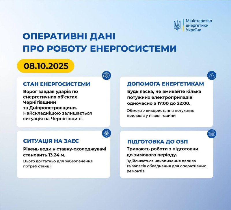 10.56 РФ атаковала объекты энергетики не только в Черниговской, но и Днепропетровской области, сообщает Минэнерго.