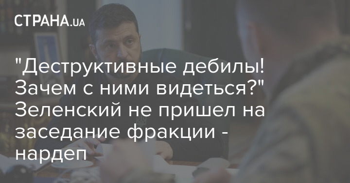 Владимир Зеленский заявил депутатам из фракции "Слуги народа": "Деструктивные дебилы! Зачем с ними видеться?" После этого он отменил запланированную встречу с фракцией.