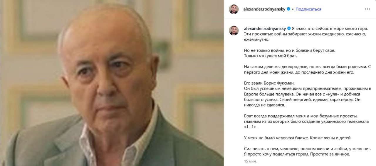 У меня не было человека ближе. Кроме жены и детей", - написал Роднянский.