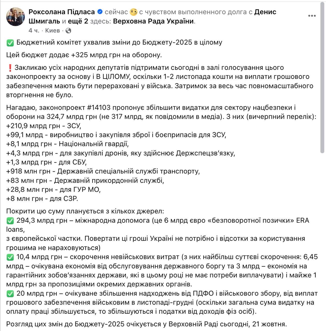 Верховная Рада снова увеличила расходную часть бюджета на оборону в 2025 году. Законопроект № №14103, которым выделяются дополнительные 325 миллиардов гривен, поддержали 293 депутата.