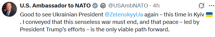 Накануне Уитакер впервые посетил Украину во главе делегации Североатлантического альянса. Постпред США в НАТО провёл встречу с министром обороны Украины Денисом Шмыгалем. По словам главы Минобороны, стороны обсудили внедрение инноваций и усиление защиты украинского неба от дронов и ракет, особенно в зимний период.