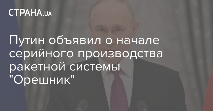 Глава Кремля Владимир Путин заявил, что Россия приступила к серийному выпуску ракетной системы "Орешник".