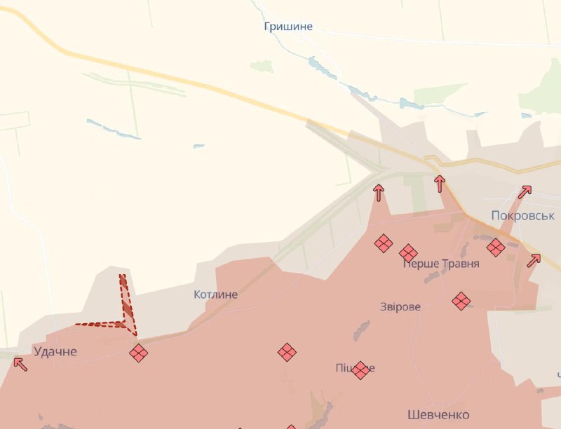 13:54 Армия РФ резко продвинулась к Мирнограде, что около Покровска, и возле Удачного в направлении трассы на Павлоград, сообщает Deep State.