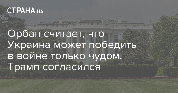 Премьер-министр Венгрии Виктор Орбан во время встречи с Дональдом Трампом в Белом доме заявил, что победа Украины в войне против России была бы "чудом".