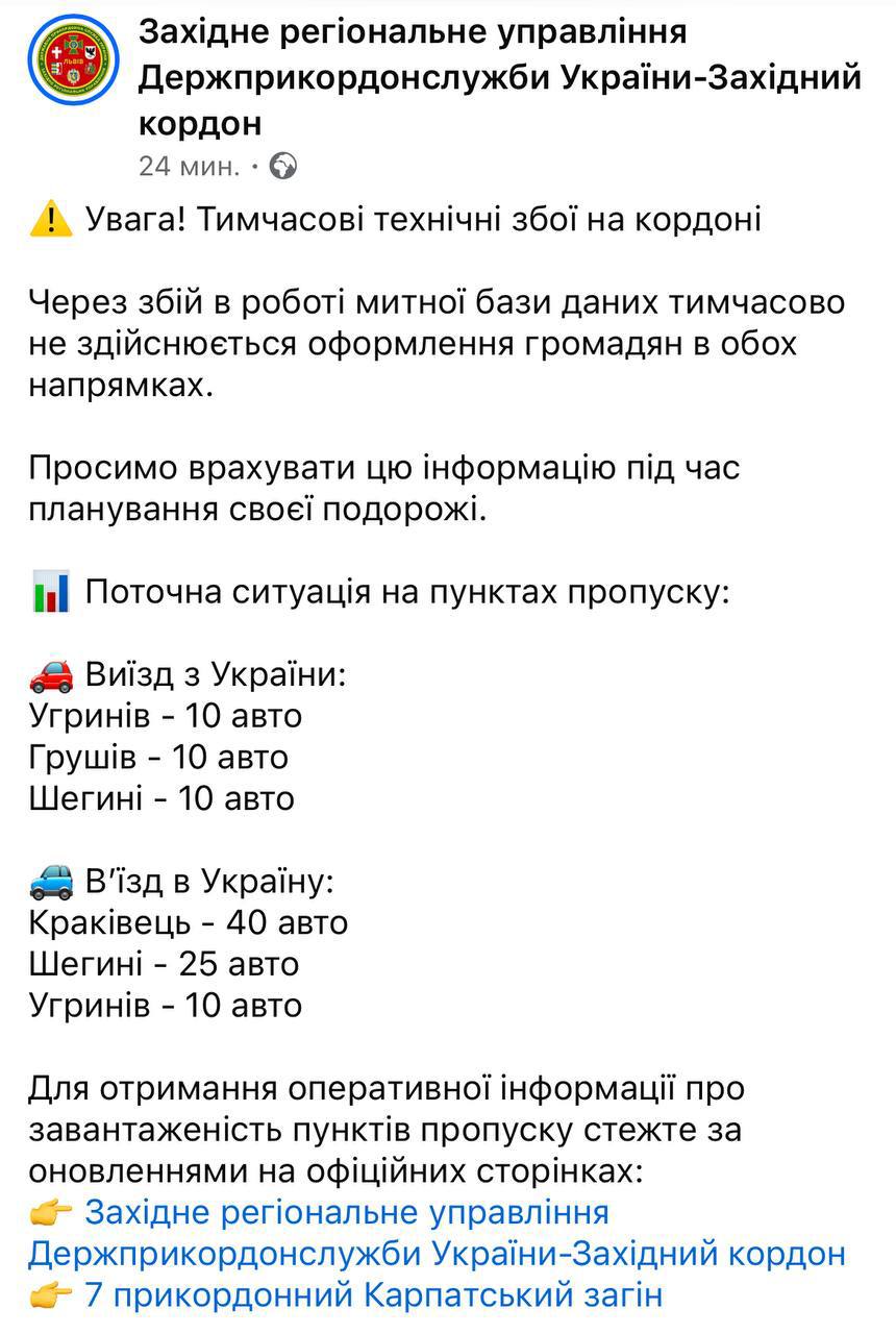 Заявляется, что работа над устранением сбоя уже ведется и обещает, что пункты пропуска вскоре снова заработают в штатном режиме.