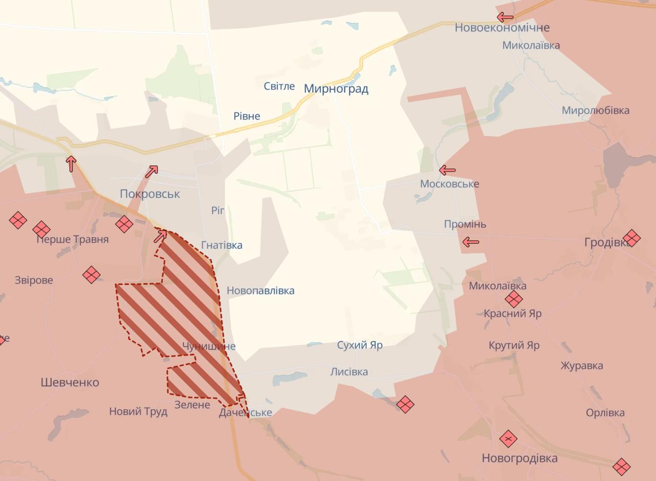 Также сообщается о ее продвижении в районах Владимировки (Добропольское направление), Котлино (западнее Покровска) и Дачного (юго-восток Днепропетровской области).