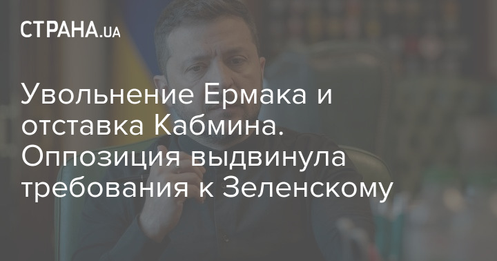 Партии требуют отправить в отставку правительство, сформировать новую коалицию в парламенте с участием не только "Слуги народа", назначить новый Кабинет министров и уволить руководителя Офиса президента Андрея Ермака.