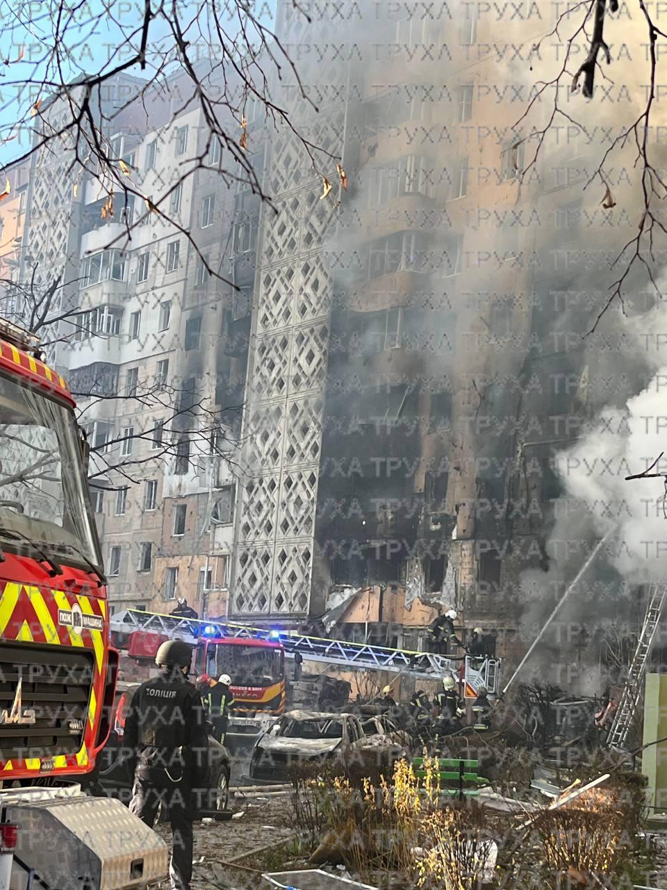 7.58 Кадры многоэтажки, повреждённой в Тернополе после обстрела.