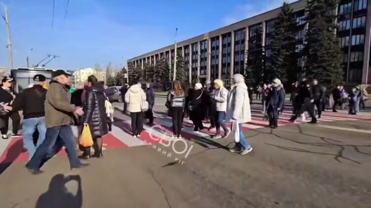 Митингующие в Кривом Роге перекрыли дорогу, протестуя против отключений света. Кадр из видео