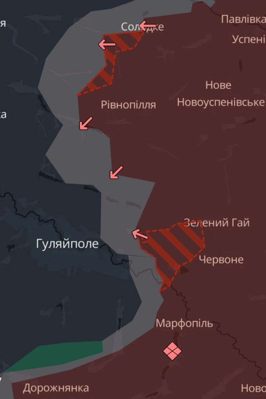 "Карта обновлена. Враг продвинулся вблизи Ривнополья и Гуляйполя", - говорится в сообщении.