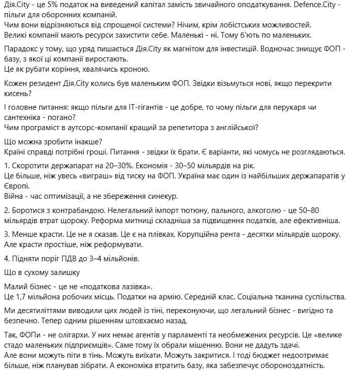 Зато пришла другая идея: давайте сильнее пощипаем этих "конченых гусей" – ФОПов", - пишет Амелин.