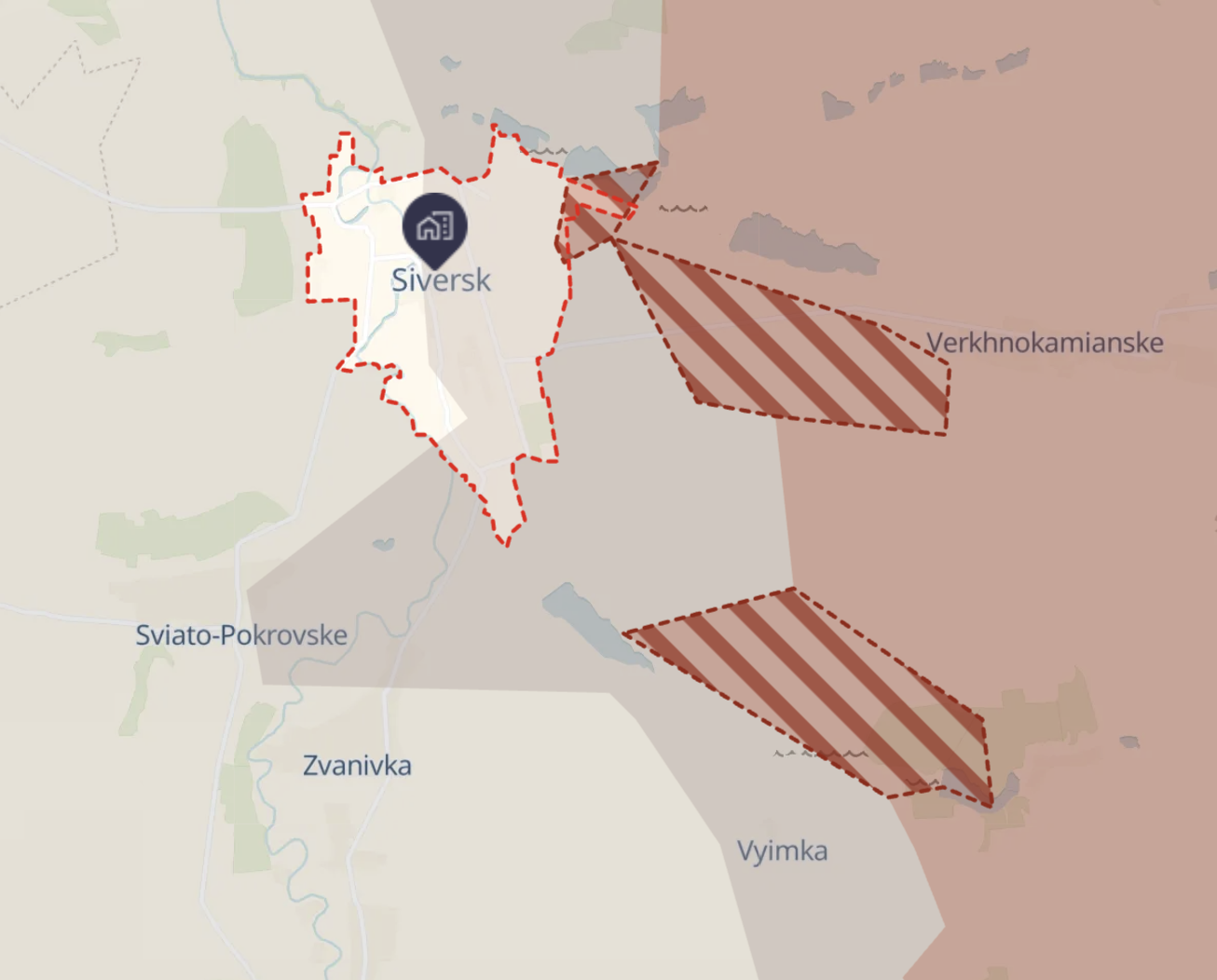 Южнее Северска россияне продвигаются в направлении Малиновки, пишет украинский офицер с позывным "Алекс". Он считает, что это прямая угроза Краматорску, который становится все ближе к линии фронта.