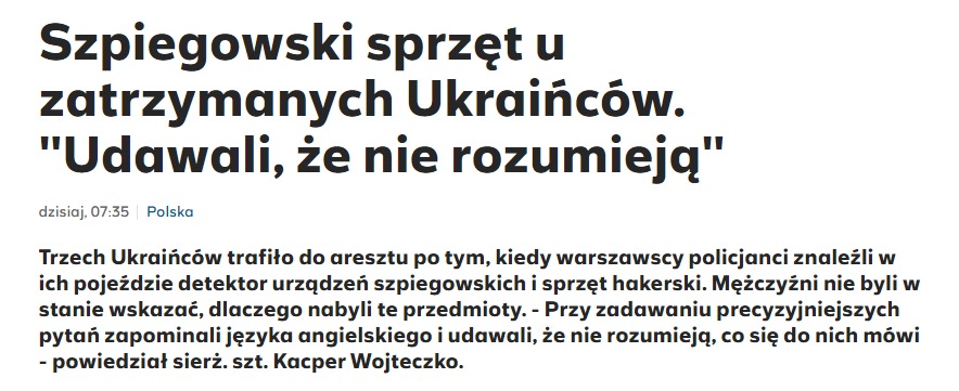 В Польше задержали трех граждан Украины и выявили у них в автомобиле детектор шпионских устройств и хакерское оборудование. Мужчины не смогли объяснить, зачем они везут эти предметы.