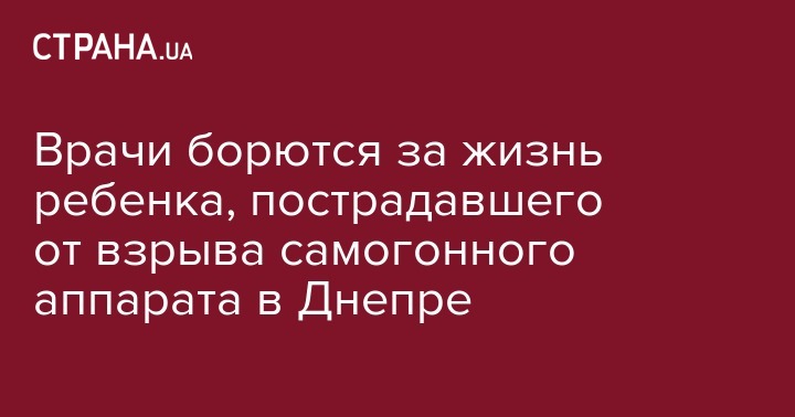 Врачи борются за жизнь ребенка, который получил ожоги в результате взрыва самогонного аппарата в Днепре. Об этом сообщил сообщает пресс-служба полиции области.