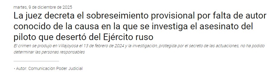 Судья постановил приостановить производство по делу об убийстве пилота после получения отчета от Гражданской гвардии, в котором говорится, что исполнителей и заказчиков преступления установить не удалось. В итоге суд сделал вывод об отсутствии доказательств для привлечения к уголовной ответственности исполнителей, соучастников и пособников в убийстве.