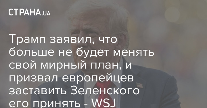 По информации издания, Трамп исключает возможность изменения мирного плана, предложенного Вашингтоном.