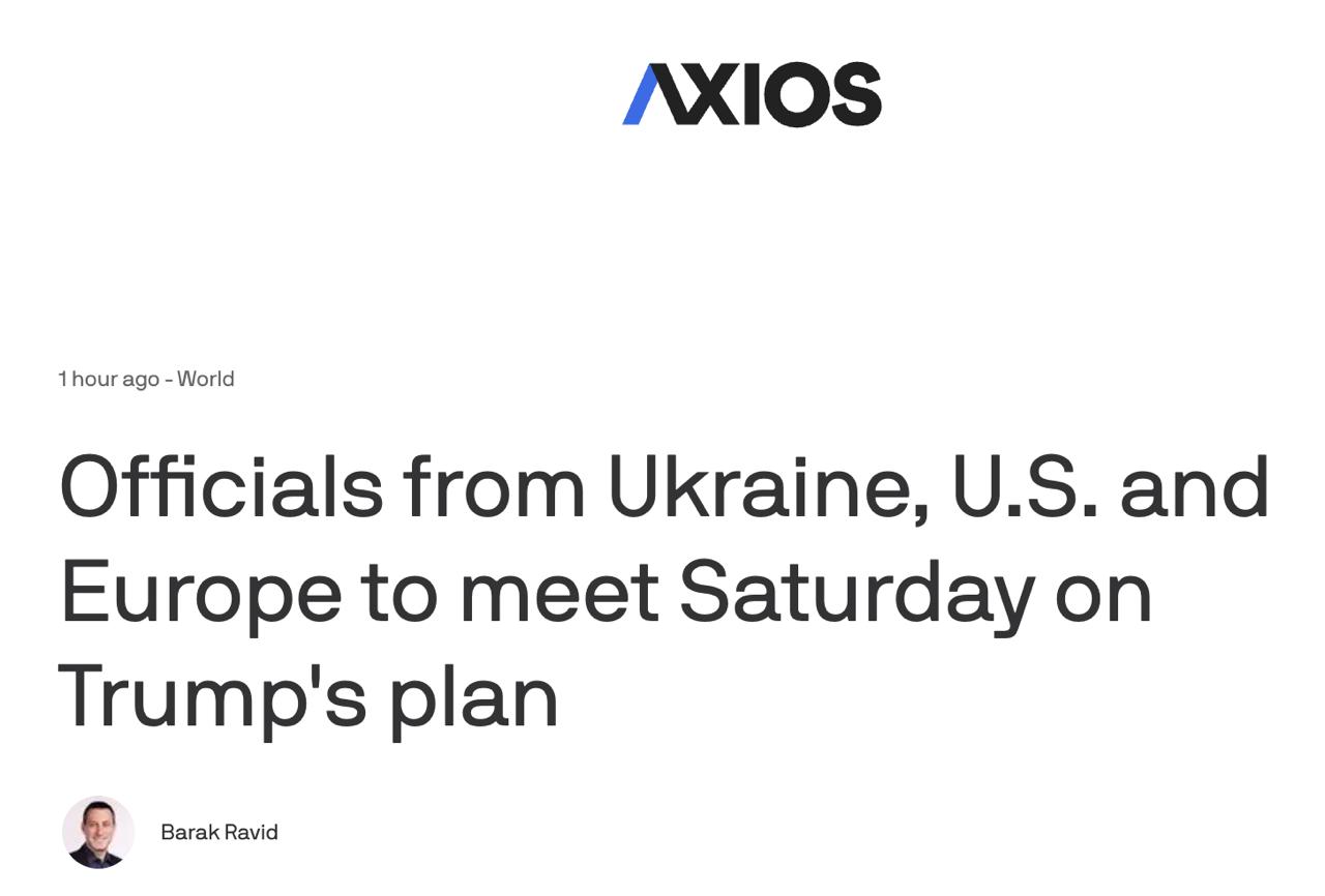 Как сообщает Axios со ссылкой на источники в Белом доме и украинского чиновника, представители США, Украины, Франции, Германии и Британии собираются обсудить мирный план и европейско-украинские правки к нему в субботу в Париже.