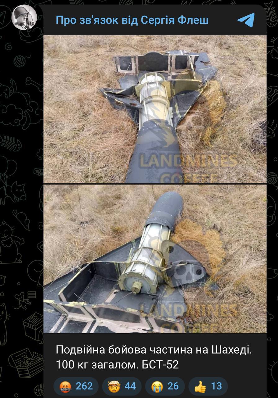 16:04 Россия начала использовать двойную боевую часть в "Шахедах" весом до 100 килограмм.