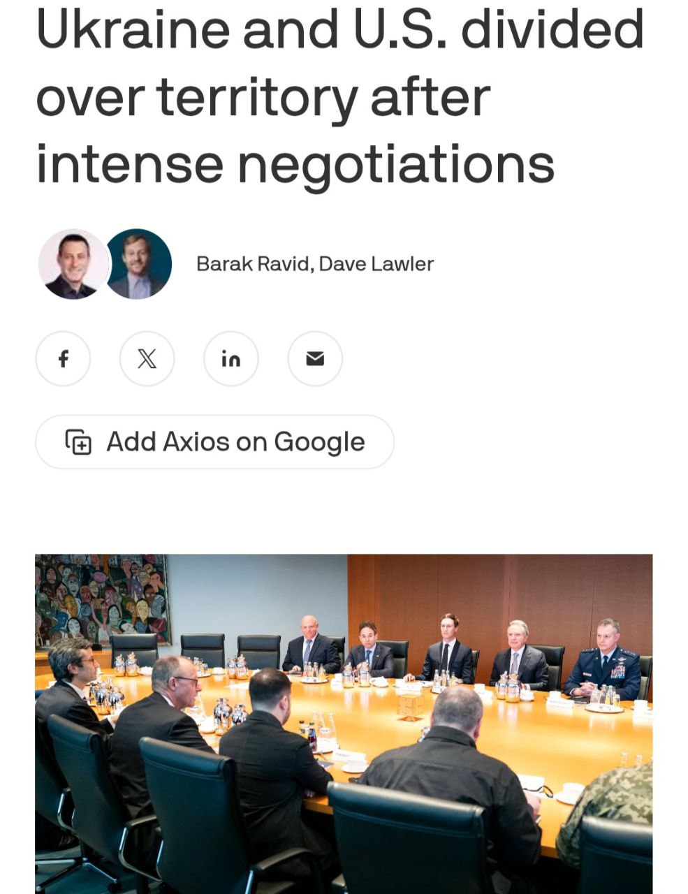 13.58 Уиткофф и Кушнер на сегодняшней встрече снова будут настаивать на полном выводе войск из Донбасса, а Зеленский продолжит отказываться, сообщает AFP со ссылкой на источники.