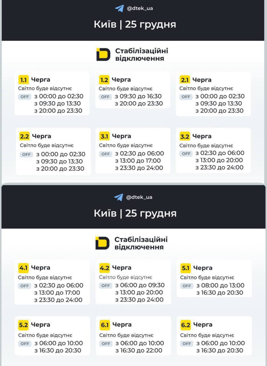 13.16 ДТЭК ухудшил графики отключения света для Киева. По сравнению со вчерашними у разных очередей добавилось от 1 до 5 часов отключений света. У некоторых очередей (например, 6.2) отключения суммарно составят 17 часов в сутки. В среднем у всех около 14 часов.