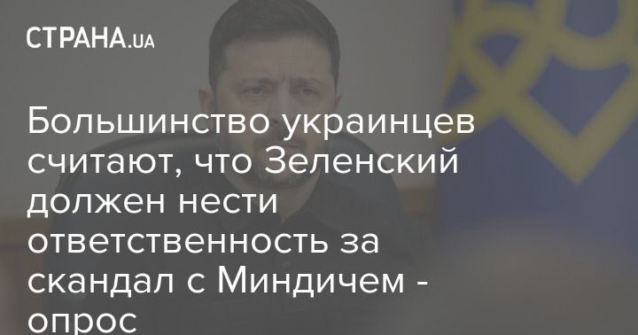 Большинство украинцев считают, что президент Украины Владимир Зеленский должен понести уголовную или политическую ответственность за коррупционные схемы бизнесмена Тимура Миндича.