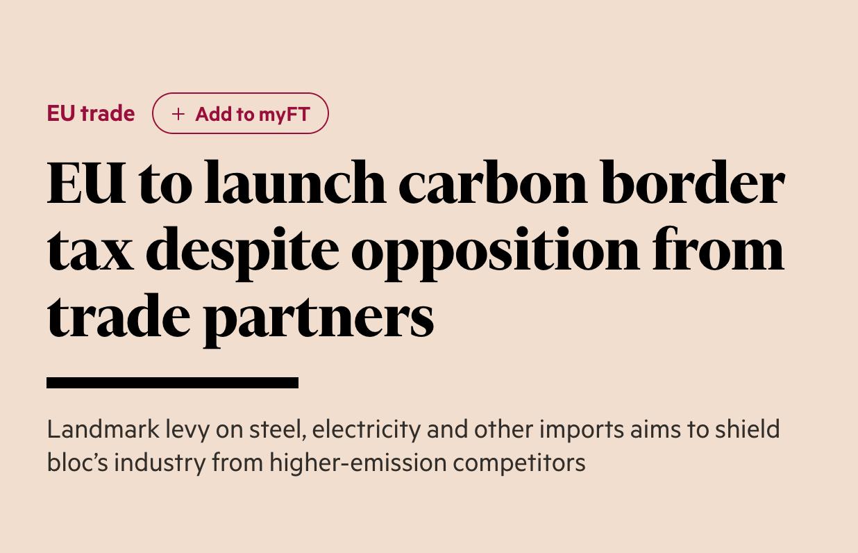 Отметим, что  CBAM - это механизм, разработанный ЕС для борьбы с изменением климата и сокращения выбросов парниковых газов за счёт компенсации так называемых углеродных утечек. Под ними понимаются выбросы, возникающие при производстве товаров за пределами Евросоюза в странах с менее жёстким экологическим регулированием. Суть механизма заключается в том, что государства и зарубежные производители с более высоким уровнем выбросов должны уплачивать дополнительную пошлину при ввозе продукции в ЕС. Обязательное регулирование в рамках CBAM распространяется на шесть категорий товаров: цемент, железо и сталь, алюминий, удобрения, электроэнергию и водород.