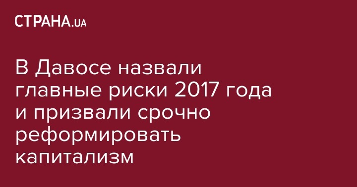 Представители Всемирного экономического форума (ВЭФ) в швейцарском Давосе назвали экстремальные погодные явления, вынужденную массовую миграцию и террористические атаки - главными угрозами для человечества в 2017 году. Также они призвали задуматься о реформировании рыночного капитализма.