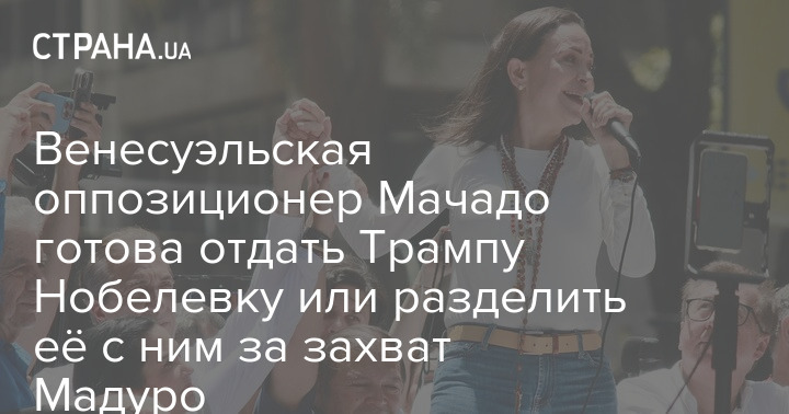 Лидер венесуэльской оппозиции Мария Корина Мачадо заявила, что готова отдать Нобелевскую премию мира президенту США Дональду Трампу. По её словам, глава Белого дома доказал, что заслуживает эту награду, разрешив бомбёжки Венесуэлы и захват президента страны Николаса Мадуро.