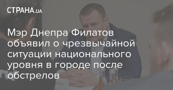 Мэр Днепра Филатов объявил о чрезвычайной ситуации национального уровня в городе после обстрелов