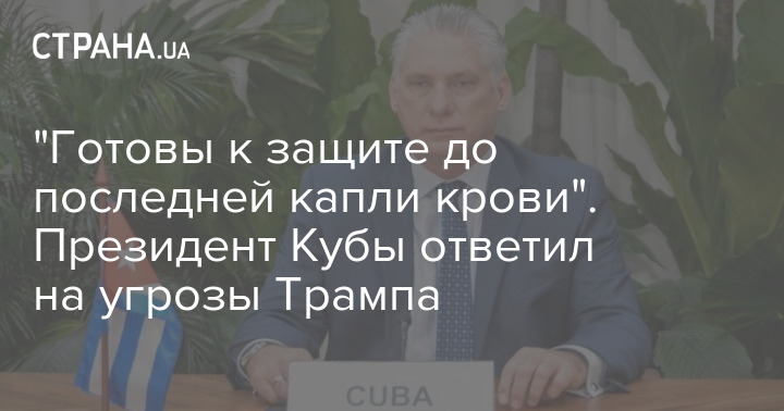 Президент Кубы Мигель Диаз-Канель Бермудез отреагировал на угрозы со стороны президента США Дональда Трампа, заявив, что страна готова защищать себя силой.