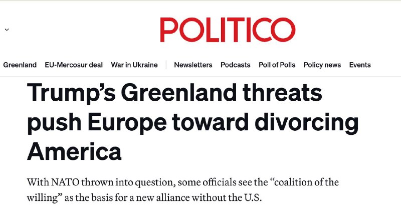 Некоторые официальные лица Европейского Союза рассматривают создание нового военного объединения с участием Украины, но без США. Такое решение уже зреет из-за угроз американского президента Дональда Трампа захватить Гренландию.