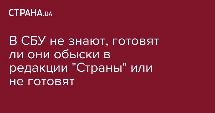 В СБУ не подтверждают информацию, что они готовятся проводить обыски в редакции интернет-издания "Страна". Об этом в комментарии "Украинской правде" заявила пресс-секретарь ведомства Елена Гитлянская.