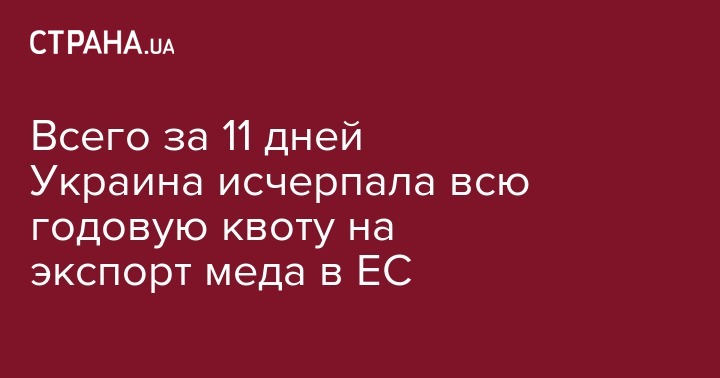 Украина по состоянию на 11 января 2017 года уже исчерпала всю выделенную на год квоту на беспошлинные поставки в страны Европейского Союза пчелиного меда.