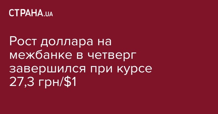 Курс гривни на межбанке в четверг снижался в течении всего дня и закрылся на уровне 27,3 грн/$1. Об этом сообщает "Интерфакс-Украина".