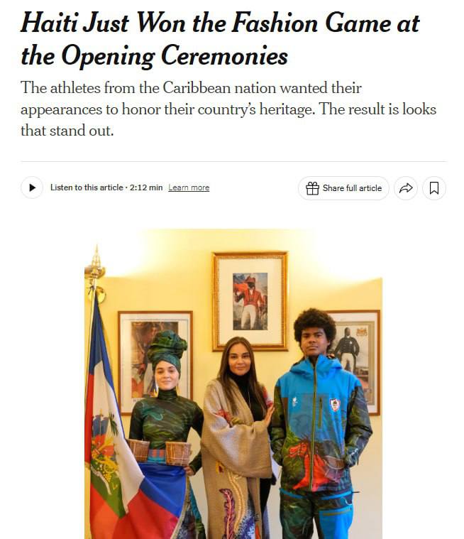 СМИ разных стран обсуждают дизайн итальянско-гаитянского модельера Стеллы Джин, которая украсила зимние костюмы олимпийцев из Гаити рисунками ручной работы.