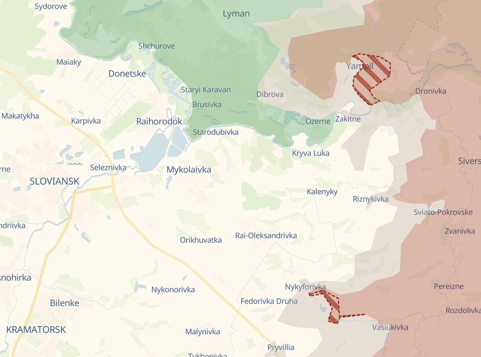 Севернее российские войска, по данным Deep State, продвинулись близ Ямполя под Лиманом.