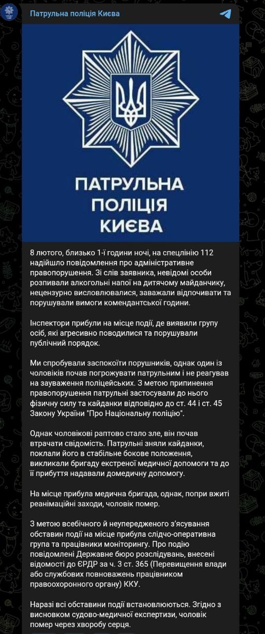 Государственное бюро расследований в свою очередь уже открыло уголовное дело по факту гибели мужчины, сообщает патрульная полиция.